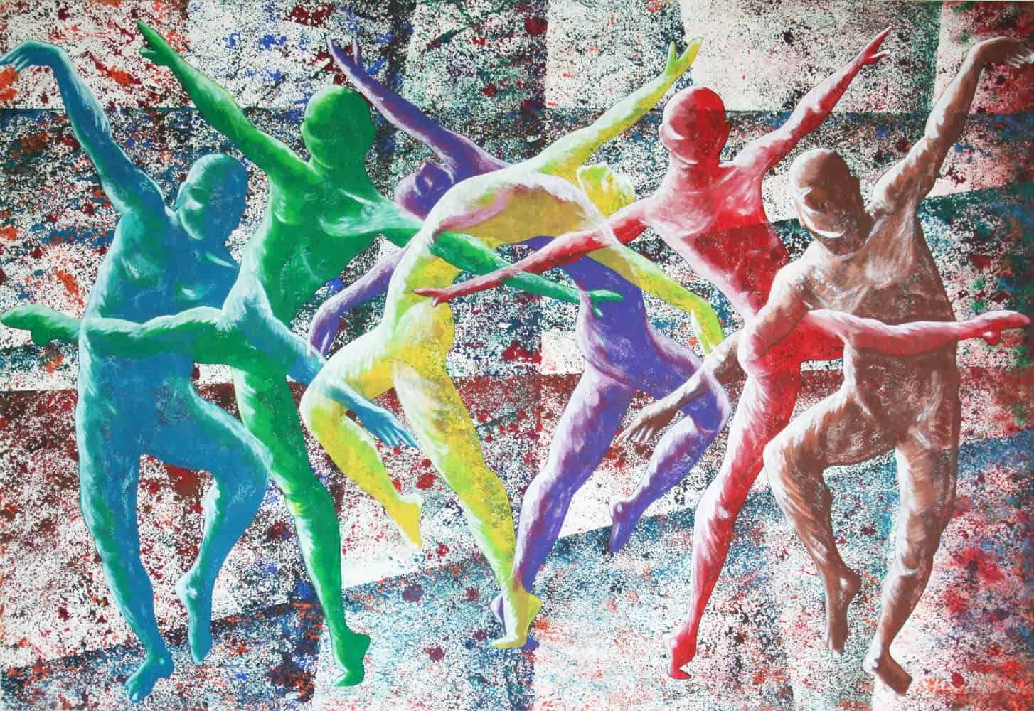 I am a dancer and I am fascinated by the shapes dancers bodies make so I often do realistic or semi-abstract paintings of dancers. A self portrait with Nureyev and another professional dancer, egotistic moi?