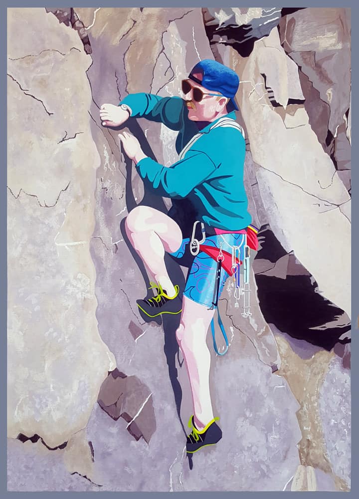 A self portrait, yes another one, climbing a hard climb on Kendijack Cliffs, Cornwall in the 80’s.